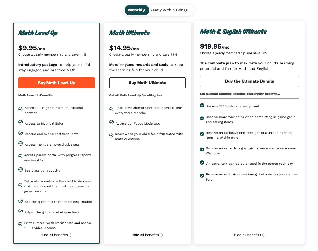Based on our review of each option, your best value is a yearly family Level Up plan. This is perfect if you have more than one child who wants a simple but thorough Membership offering and you're confident they’ll enjoy it for the rest of the year.