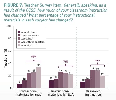 Due to the massive overhaul of state education frameworks, many teachers are still scrambling to prepare. A study from the Center for Education Policy Research at Harvard University reported that82%of math teachers are changing “more than half of their instructional materials” in response to the new practice standards. The same study found that “three out of four teachers (73%) reported that they have embraced the new standards ‘quite a bit’ or ‘fully’.”