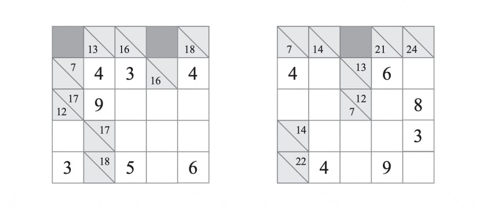 Kakuro, also called “Cross Sums,” is another mathematical crossword puzzle. Players must use the numbers one through nine to reach “clues” on the outside of the row. Decrease the size of the grid to make it easier for younger players, or keep it as is for students who need a challenge. Students can combine addition and critical thinking and develop multiple skills with one fun challenge.