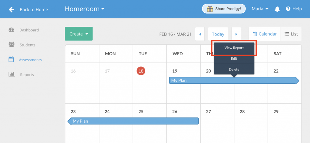 7. To see how students performed on your Plan, go to your Assessments tool and click on the Plan. Select View Report to see student results, determine trouble spots and make teaching decisions!